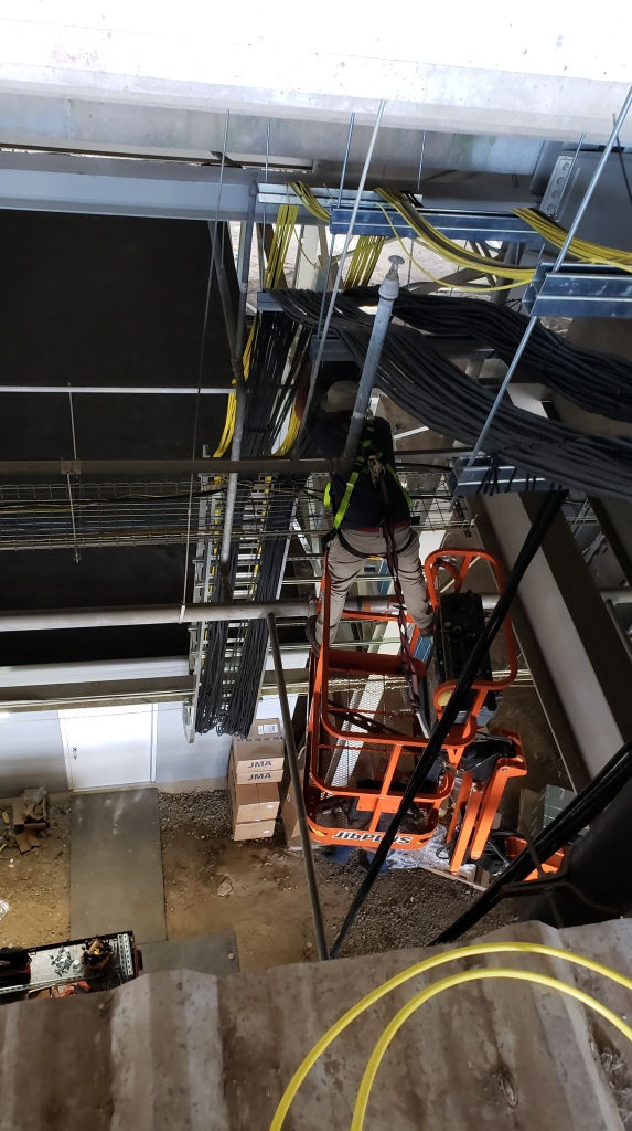 Man, it’s amazing how a two-week project has turned into a month of work. Dad and were on site from 7am to 7 or 8pm every day this week, Monday to Sunday. We spent most of the last four days testing and repairing the problems with our cheap little fiber pigtails. It continues to frustrate me that the designers didn’t put the zones in order in a logical way. On the plus side, I got a LOT of exercise! Nothing like walking all the way around the football stadium every time you need to find a new zone!